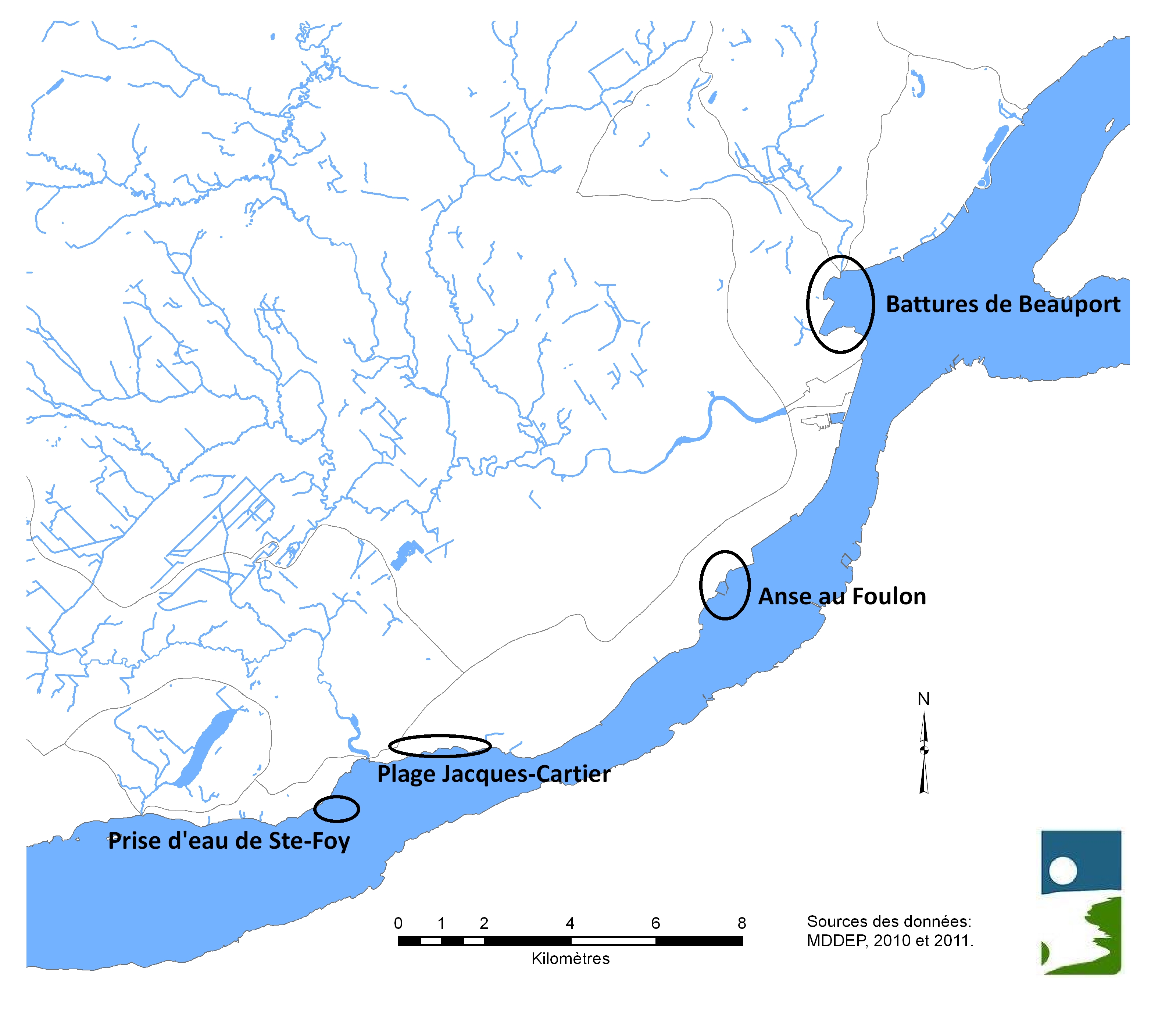 VILLE DE QUÉBEC. 2010. Qualité de l’eau des plages, du fleuve et des exutoires pluviaux. Rapport annuel 2010. Ville de Québec, Service de l’environnement. + Annexes.